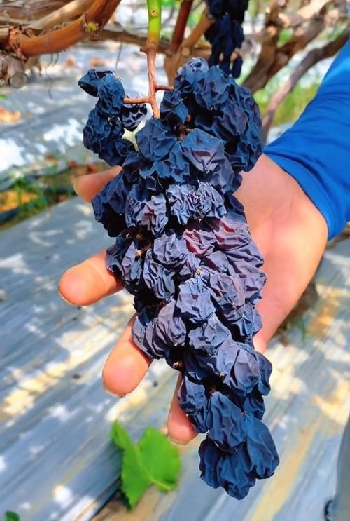 30亩葡萄因高温晒成葡萄干