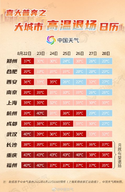 截至8月22日,中央气象台已连续33天发布高温预警,其中12日至21日已经连续11天发布了最高级别的红色预警,多个省份正在经历高温的炙烤。