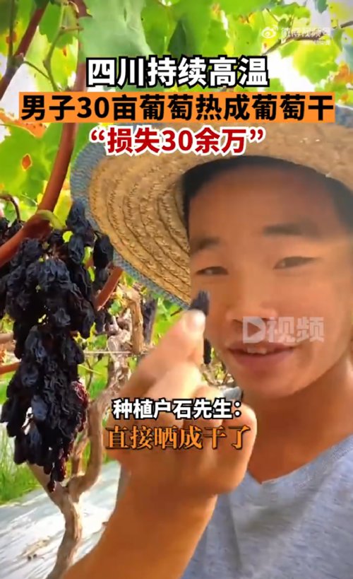 在持续的高温天气下,不少农户也因此受到损失。今日,#四川高温农户30亩葡萄热成干#的话题登上热搜。