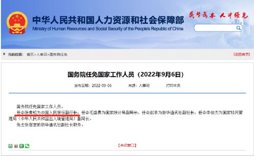 9月6日,据人社部网站消息,国务院任免国家工作人员:任命张青松为中国人民银行副行长。