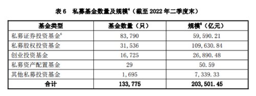 二季度私募基金规模也有所增长,二季度资产规模较一季度末增加4262.10亿元,达到20.35万亿元,基金数量为13.38万只,已登记私募基金管理人为2.43万家。