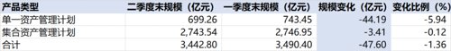 我们再来看看期货公司及其子公司私募资产管理业务的情况,二季度微降了47.60亿元,规模达到3442.80亿元。