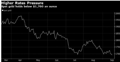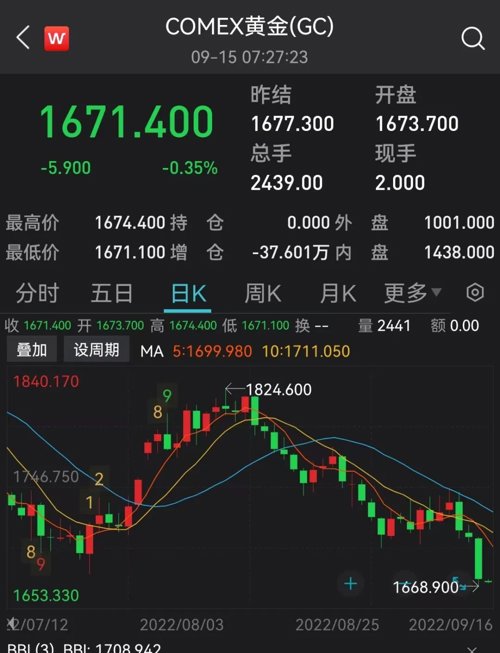 随着美联储大举加息,削弱了无息资产的吸引力,金价今年已下跌了近8.8%。美元的上涨也令金价承压,随着欧洲央行官员立场越来越鹰派,也正在遏制美元的涨幅。纽约黄金期货连跌三日,周四美股午盘曾跌至1668.9美元,日内跌近2.4%,跌至了2020年4月以来的最低水平。
