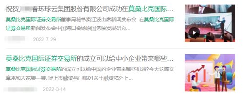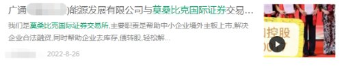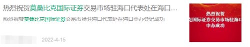 实际上,早在2021年12月16日,海南省金融局、海南证监局曾联合发布指出,近期有相关公司宣传“莫桑比克国际证券交易所”在海口挂牌并进行市场推广,宣称可以介绍企业直接到莫桑比克上市,存在重大风险。并明确,境外交易所设立的驻华代表处名录中无“莫桑比克国际证券交易所”。