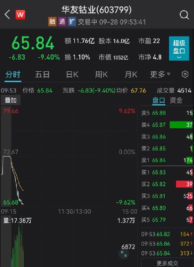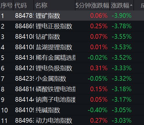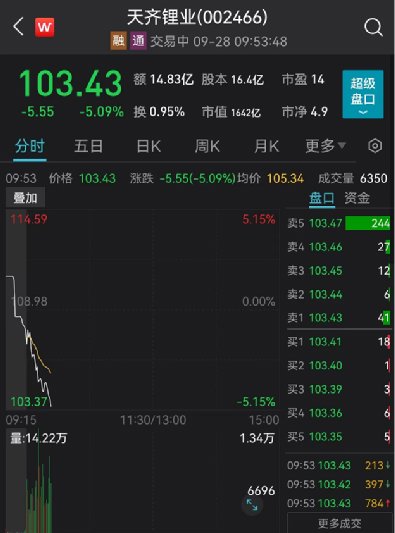 华友钴业出现闪崩,股价一度逼近跌停;天齐锂业跌超5%。
