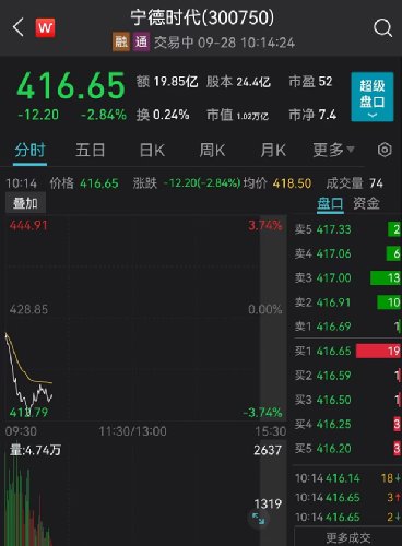 锂电产业链出现普跌,亿纬锂能跌超4%,宁德时代跌近3%。