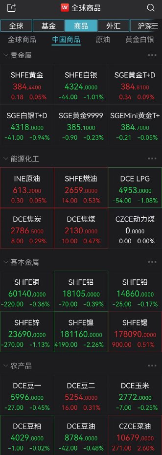 商品市场方面,国内商品期市开盘涨跌参半,油脂油料走势分化,菜油涨近3%,棕榈油跌近1%;能化品涨幅居前,甲醇涨超2%。基本金属走低,沪镍跌超2%,沪锌跌超1%。