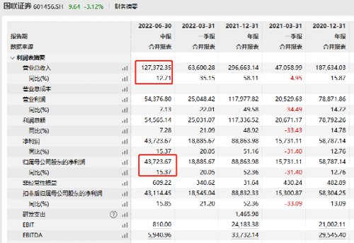 业绩方面,2022年上半年,国联证券实现营业收入12.74亿元,同比增长12.71%;实现归母净利润4.37亿元,同比增长15.37%。在上半年证券行业业绩普遍低迷的情况下,国联证券是为数不多实现营收及净利润双增长的券商之一。