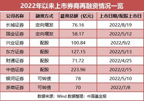 Wind数据显示,今年以来已有8家券商通过定向增发、配股、可转债等方式完成再融资。
