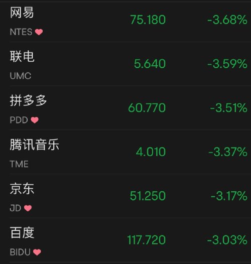 热门中概股追随大盘回落