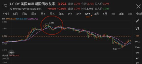 美国国债收益率回升,10年期美债收益率盘中曾重上3.80%,刷新日高时日内升逾10个基点。