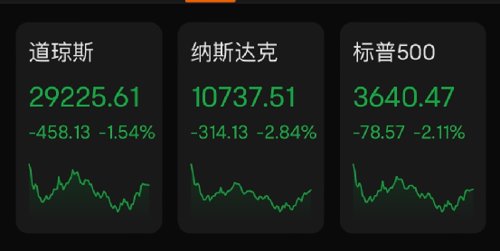 然而从周四市场表现来看,英国央行采取的措施对市场情绪的推动作用已经逐渐消散。截至收盘,道指跌458.13点,跌幅为1.54%,报29225.61点;纳指跌314.13点,跌幅为2.84%,报10737.51点;标普500指数跌78.57点,跌幅为2.11%,报3640.47点。