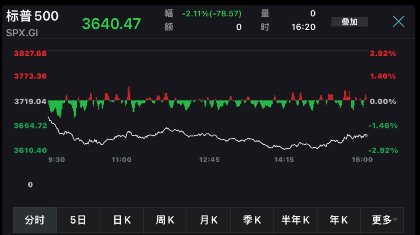 标普500盘中一度下跌至3610.40点,创2020年11月30日以来盘中最低水平。