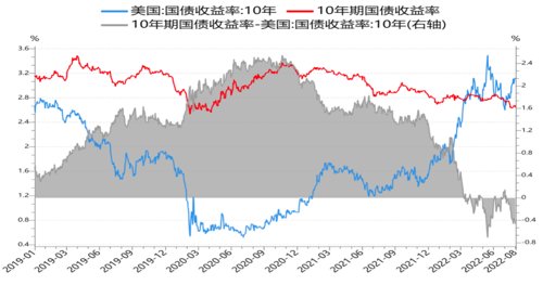 反观海外经济,美国开始进入技术性衰退的区间,如果关注欧洲经济指标,可能衰退的程度会更加显著一些。海外的通胀也开始筑顶回落。美联储9月到12月仍将延续加息步伐,但预计年底可能慢慢停止加息。目前美债收益率仍可能阶段性上冲,但后续将会迎来见顶回落。届时中美利差将会开始修复,美联储货币政策调整对国内经济、金融的冲击也将逐步减弱。