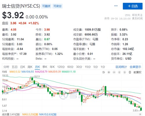 瑞信近年受一系列丑闻困扰,包括Archegos爆仓、Greensill破产、泄密事件等,令公司名声受损,更拖累业绩。其股价自去年二月起一蹶不振,从14.90美元跌至周五收市的3.92美元。