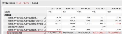 但是从九毛九的财报上来看,九毛九也不是富裕人家,上半年营收仅仅18亿元,企业的自由现金流量更是仅仅4.4亿元。