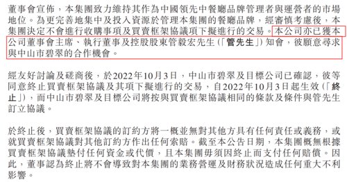 而仅仅两个交易日前,即9月29日晚间,九毛九才宣布要以不超过11亿元的价格收购碧桂园旗下的房地产项目。
