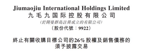 10月3日晚间,港股九毛九在港交所公告,终止11亿收购碧桂园旗下广州国际金融城项目26%权益事项。