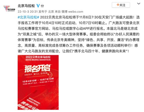 消息面上,据@北京马拉松 消息,2022北京马拉松将于11月6日7:30在天安门广场盛大起跑。