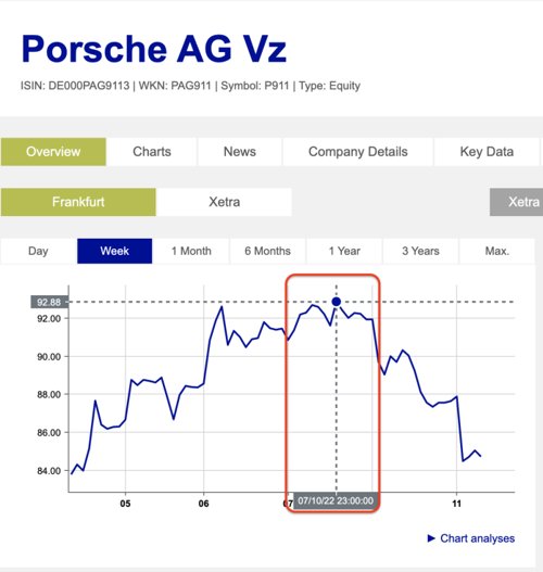 9月29日,保时捷在法兰克福交易所上市,发行价格为82.5欧元。10月7日盘中,保时捷股价一度冲高至93欧元。