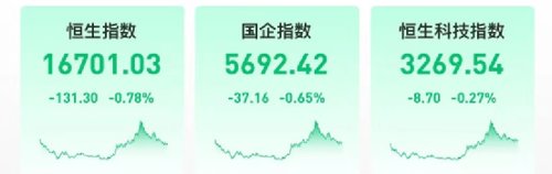截至收盘,恒生指数收跌0.78%,报16701.03点;恒生科技指数跌0.27%,报3269.54点;恒生国企指数跌0.65%,报5692.42点。南向资金逆市净买入11.36亿港元。