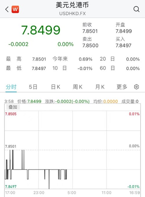 事实上,随着美联储的持续加息,自5月12日以来,港元多次触发弱方兑换保证,今次是金管局第35次出手“接钱”。目前美元兑港币汇率位于7.8499附近。