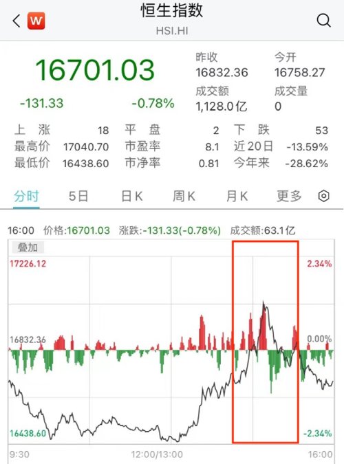 10月12日周三,港股今日低开低走,午盘触及日低,后受A股带动迅速拉升,一度走出V型反转,无奈尾盘再度转跌,最终集体收跌。