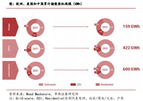 华西证券一份研报也显示,目前以欧洲为代表的海外户用储能正经历高速增长,2021年欧洲户用储能新增装机规模为2045MWh,同比增长73%,2015-2021年均复合增速有望超60%。而美国户储规模同样发展较快,根据Wood Mackenzie,美国2021年户用储能新增装机功率规模为436MW,同比增长88%。