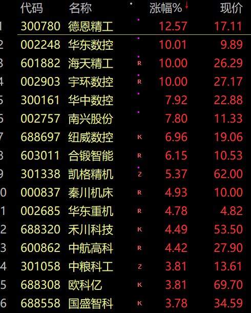 工业母机概念拉升走高,华东数控、宇环数控、海天精工涨停。