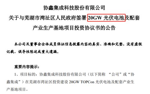 此次80亿元的芜湖投资协议,实际上只是协鑫集成规划的第二个TOPCon光伏电池项目。