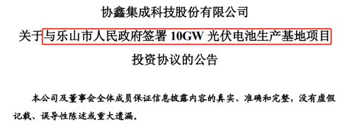 早在2020年12月30日公司就公告,与乐山市人民政府及乐山高新技术产业开发区管理委员会签订《乐山年产10GW光伏电池生产基地项目投资协议书》,“三方本着互利互惠、共同发展的原则,就公司在乐山市高新区投资年产10GW光伏电池生产基地项目达成合作意向”。