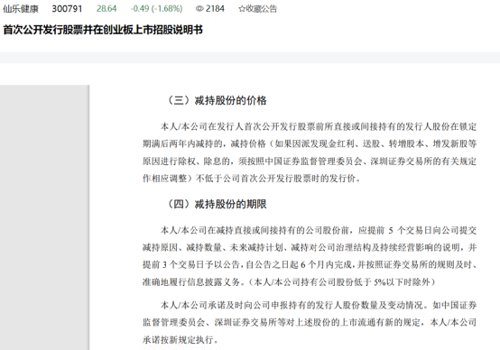 林培娜、高锋在仙乐健康《首次公开发行股票并在创业板上市招股说明书》中承诺,“本人在发行人首次公开发行股票前所直接或间接持有的发行人股份在锁定期满后两年内减持的,减持价格(如果因派发现金红利、送股、转增股本、增发新股等原因进行除权、除息的,须按照中国证券监督管理委员会、深圳证券交易所的有关规定作相应调整)不低于公司首次公开发行股票时的发行价。”
