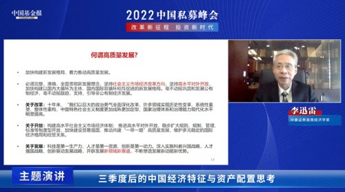 11月1日,由中国基金报主办的“2022中国私募峰会”在线上举行。中泰证券首席经济学家李迅雷作为主讲嘉宾,发表了题为《三季度后中国经济特征与资产配置思考》的主题演讲。