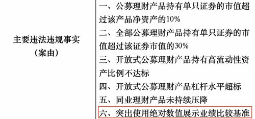 一位银行资管部人士告诉记者,“突出使用绝对值展示业绩比较基准”可能涉及的违规情况是在理财产品的推介材料中将业绩比较基准以一个绝对数值的形式呈现,且该数值在推介材料的宣传中位置醒目且字体巨大。