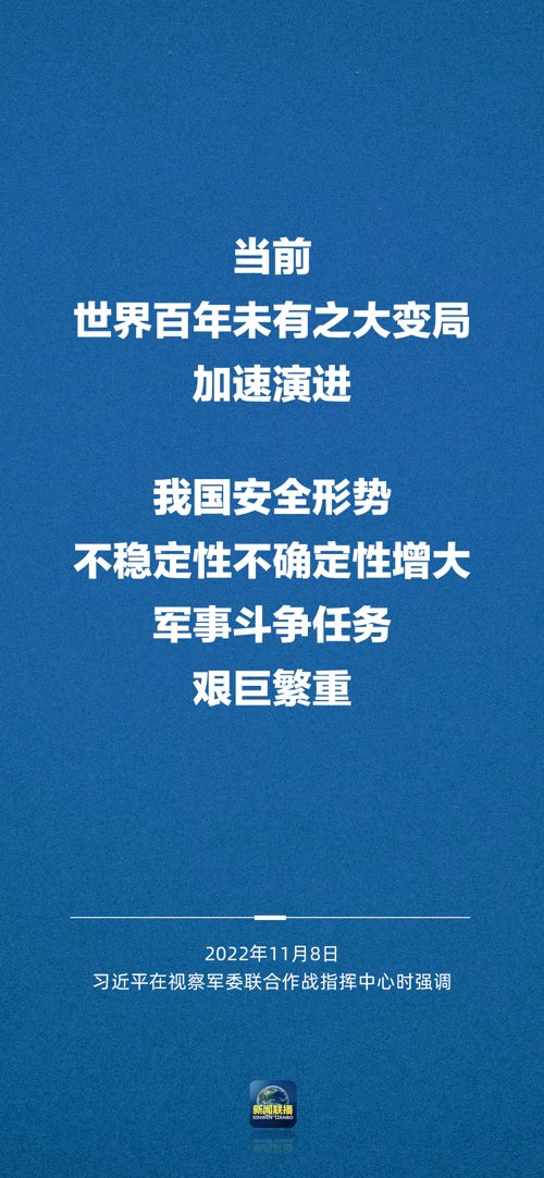 习近平强调,今天,我和军委一班人到军委联指中心来,就是要亮明新一届军委贯彻落实党的二十大精神、全面加强练兵备战的决心态度。
