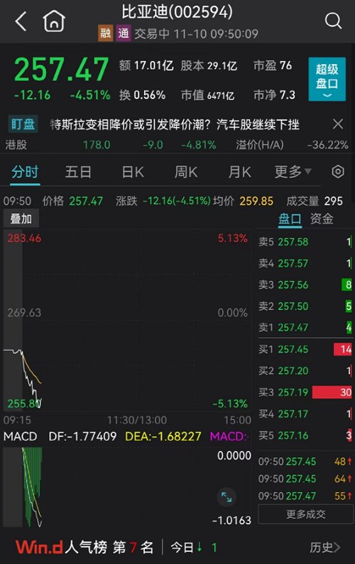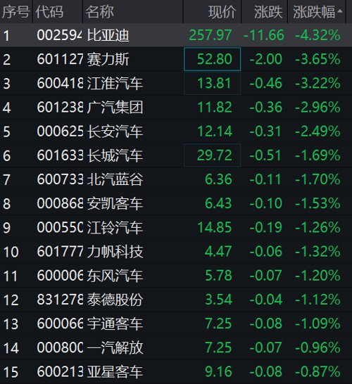 11月10日,A+H汽车股集体走低。比亚迪大跌超4%,赛里斯、江淮汽车、广汽集团跌幅居前。