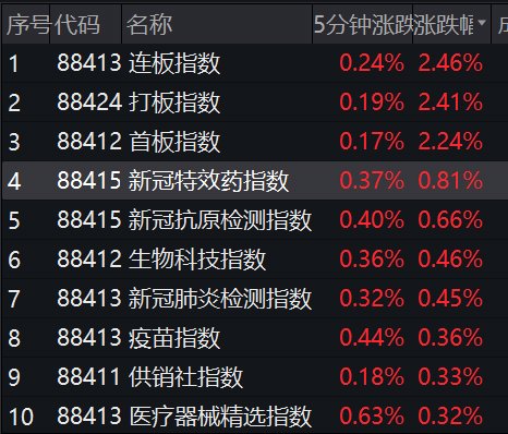 盘面上,消费电子继续下跌,资源股普遍回调;新能源赛道再度走弱,抗疫题材逆势活跃,新冠特效药、中药领涨。