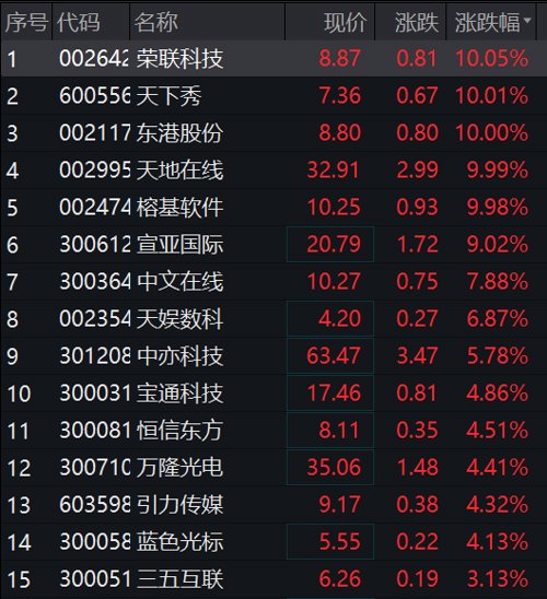 Web3.0概念卷土重来,容联科技、天下秀、东港股份、榕基软件、天地在线相继涨停,宣亚国际冲击涨停板。