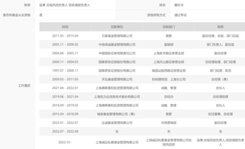 此外,上海诚远私募基金的监事、合规风控负责人詹志令,也是一名在资管行业有着超过20年从业经历的资深老将。他曾任职于国泰君安、中银国际证券,以及中信保诚基金、天弘基金、万家基金等多家金融机构,也曾参与筹建瑞泉基金并拟任董事、总经理;2022年1月到7月他还出任达诚基金市场营销部副总经理,随后“公奔私”和刘浩一起创业。