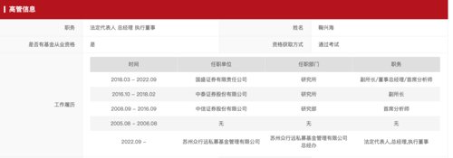 这家新晋私募机构的法定代表人、总经理鞠兴海曾是中信证券研究部首席分析师。2016年10月加入中泰证券,成为研究所副所长。随后在2018年3月跳槽,成为国盛证券研究所的副所长、董事总经理、首席分析师。2022年9月“奔私”创业,成为苏州众行远私募基金的掌门人。