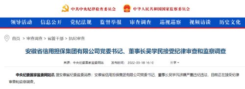 今年3月,中央纪委国家监委网站通报称,安徽省信用担保集团有限公司党委书记、董事长吴学民涉嫌严重违纪违法,接受纪律审查和监察调查。从接受调查至今,刚满8个月。