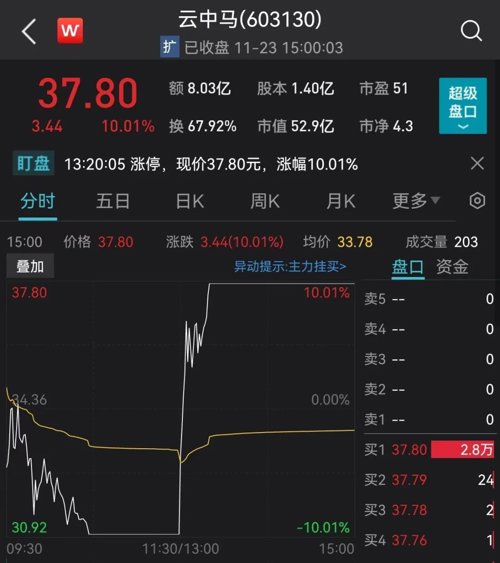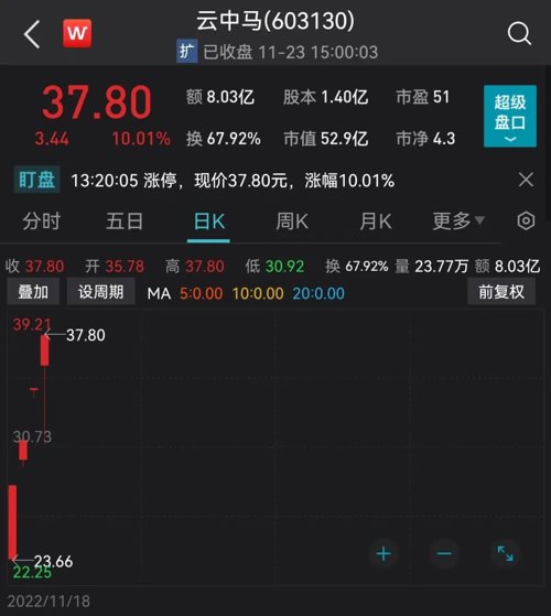 值得注意的是,云中马是18日刚刚登陆A股的新股,截至目前已经连续4个涨停。