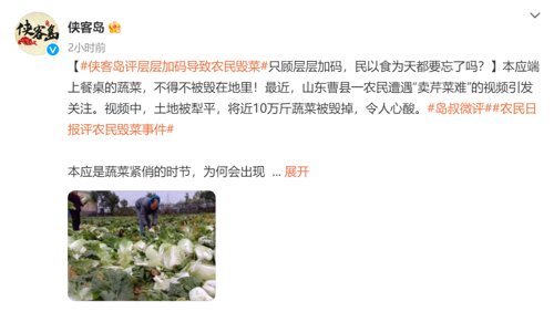侠客岛发表文章:只顾层层加码,民以食为天都要忘了吗?