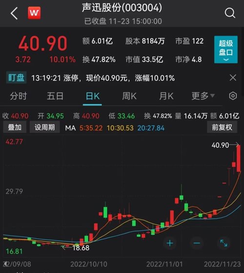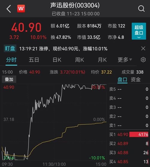 蹭上信创概念的声迅股份此前连拉4个涨停,昨日受赛道股暴跌影响,未能封住涨停。