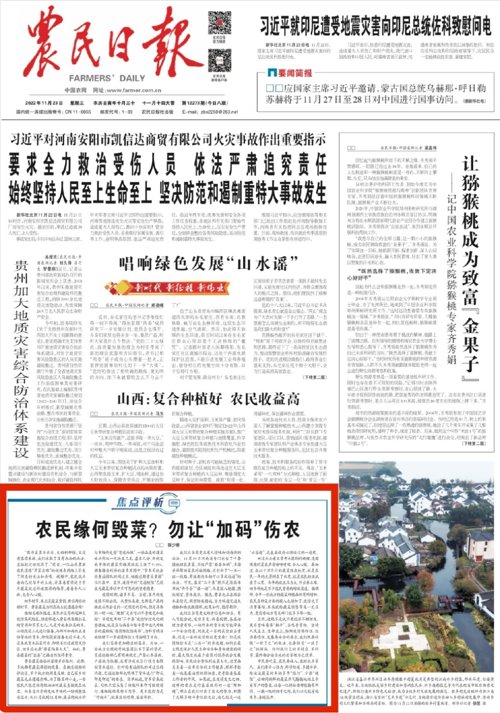 《农民日报》今日头版发表文章点评,勿让“加吗伤农”。