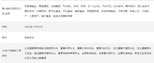恩捷股份11月22日的电话会议上,不乏知名顶级机构,涵盖头部公私募、险资、QFII和券商,包括贝莱德基金,高盛国际,花旗集团,Fidelity,AXA,BNP,D1 Capital,Point72,红杉资本,景林资产,正心谷资本,君和资本,半夏投资,易方达基金,天弘基金,嘉实基金,交银施罗德,民生加银基金,平安资管,中金公司,太保资产,大家资产,南方基金,国金证券等。