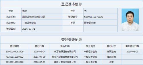 公开简历信息显示,杨明出生于1981年10月,硕士研究生。杨明的金融从业经验相当丰富,此前曾任申银万国证券投资和金融衍生品总部高级投资经理、大成国际投资总监兼基金经理;华宝兴业基金机构投资部负责人兼投资经理、太平资产资产管理部高级业务副总裁等职。