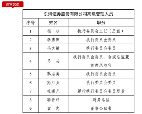 另外,2020年1月殷建华获聘任后,前任总裁赵俊不再担任东海证券总裁及代行合规总监兼首席风险官职务,但继续担任东海基金董事长直至2021年12月。