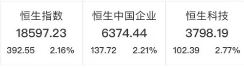 11月30日,港股小幅低开,后宽幅震荡,尾盘强势拉升,最终三大指数再度集体收涨。截至收盘,恒生指数收涨2.16%,涨392.55点,报18597.23点;恒生科技指数涨2.77%,报3798.19点;恒生国企指数涨2.21%,报6374.44点。