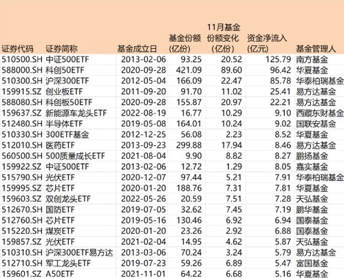 此外,易方达创业板ETF、易方达科创50ETF在11月分别吸金25.41亿元、22.21亿元。